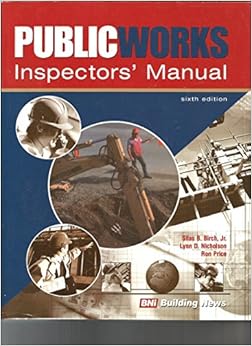 Public Works Inspectors' Manual: Silas B. Birch, Jr., Erik ... Public Works Inspectors' Manual [Silas B. Birch, Jr., Erik Updyke] on Amazon.com. *FREE* shipping on qualifying offers. A complete operational and technical guidebook for all professionals involved in inspecting public works construction for city BNi Public Works Inspector's Manual, Seventh Edition The most comprehensive and authoritative text on public works inspection ever written and published. Of considerable value not only to inspection personnel, but also to contractors, engineers, architects, and students. Order your Public Works Inspector's Manual today! Public works inspectors' manual (Book, 1996) [WorldCat.org] Public works inspectors' manual. [Silas B Birch; Los Angeles (Calif.). Department of Public Works. Bureau of Contract Administration.] Home. WorldCat Home About WorldCat Help. Search. Search for Library Items Search for Lists Search for Contacts Search for a Library. Create ...