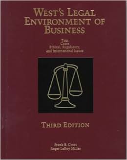 West's Legal Environment of Business: Text and Cases ... West's Legal Environment of Business: Text and Cases - Text Only [Frank B. Cross] on Amazon.com. *FREE* shipping on qualifying offers. The Newest version of West's Legal Environment of Business provides a foundation for understanding ethical, regulatory West'S Legal Environment Of Business: Text And Cases ... WEST'S LEGAL ENVIRONMENT OF BUSINESS is the 1 text for this course--setting the standard by delivering comprehensive, authoritative, and cutting-edge coverage in an interesting and accessible format. Its recipe for success includes the same "black letter law" flavor as its 1 Business Law counterpart, West's Business The Legal Environment of Business: Text and Cases: Frank B ... The Legal Environment of Business: Text and Cases [Frank B. Cross, Roger LeRoy Miller] on Amazon.com. *FREE* shipping on qualifying offers. Comprehensive, authoritative, and cutting-edge, THE LEGAL ENVIRONMENT OF BUSINESS combines a classic black letter law approach with an interesting and accessible reader-friendly format. The cases
