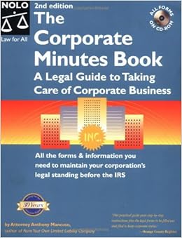 [PDF] The Corporate Minutes Book A Legal Guide To Taking Care Of Corporate Business Ebook